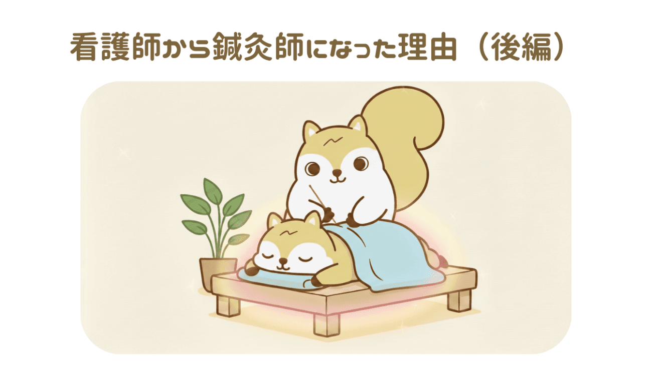 以上で「看護師を辞めて鍼灸師になった理由」の後編は終了となります。